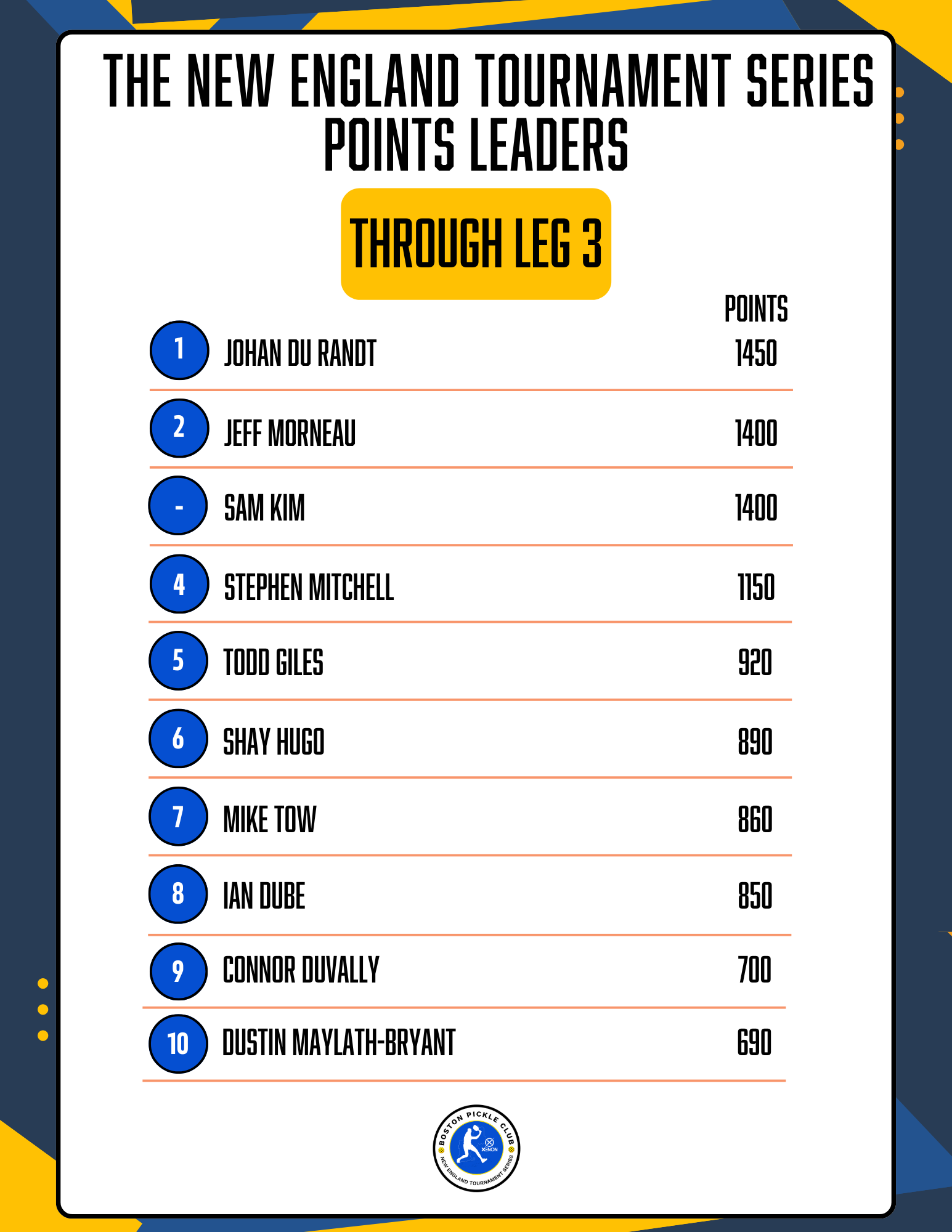 The New England Tournament Series will be a year long competition comprising six major tournaments at BPC. Players will not only compete for wins at each individual tournament, but they will also look to earn points toward the series title.